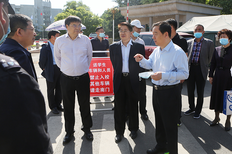 5月19日上午,校党委书记王邵军、校长赵忠秀在燕山校区、圣井校区检查指导返校复学准备工作。副校长张书学以及学校有关职能部门负责同志一同参加。