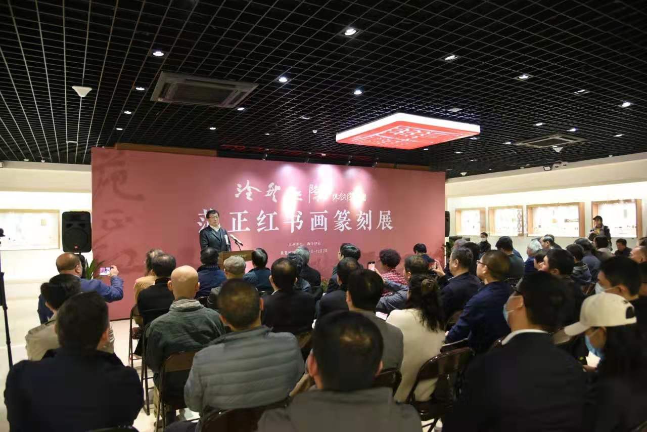11月20日上午,由西泠印社主办的“泠然无际”范正红书画篆刻展在西子湖畔孤山拉开序幕。山东财经大学党委书记王邵军;中国文联副主席、西泠印社副社长兼秘书长陈振濂;杭州市委宣传部常务副部长、西泠印社党委书记、副社长、社务委员会主任龚志南;美国纽约中美文化交流中心主席夏景柱以及西泠印社部分理事、社员、嘉宾、新闻媒体等100余人参加开幕式。开幕式由西泠印社社委会副主任秦陶主持。