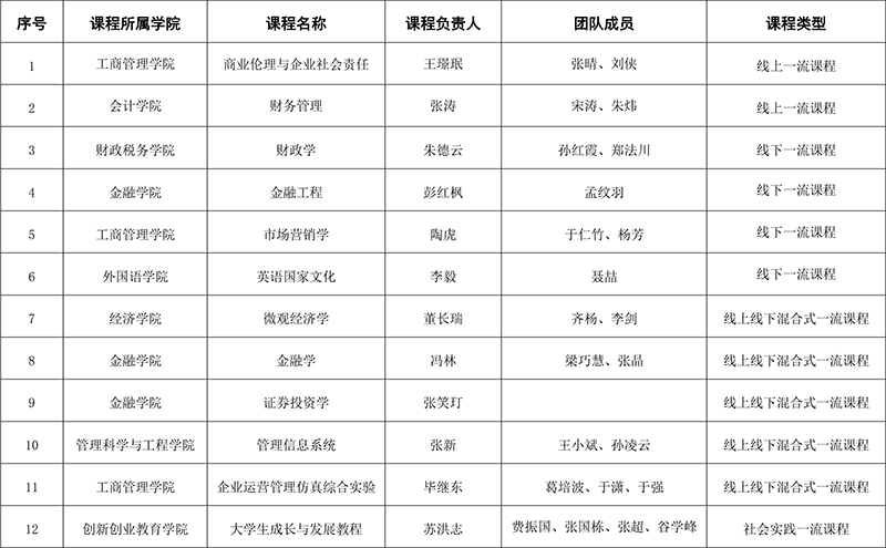 11月30日,教育部发布《关于公布首批国家级一流本科课程认定结果的通知》(教高函〔2020〕8号),公布了首批国家级一流本科课程认定结果,我校共有12门课程获批,位居省属高校第1位、全国财经类院校第3位,课程建设国内排名创历史新高。