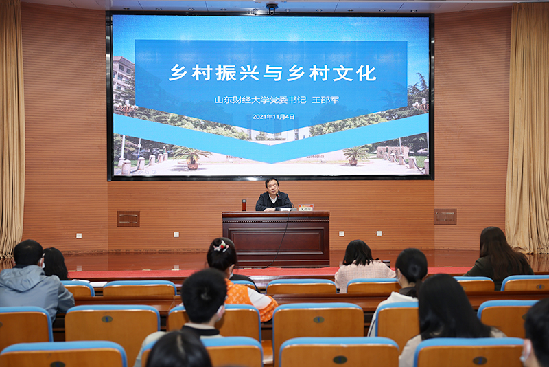 11月4日下午,研究生实践思政系列课程在燕山校区图书馆报告厅开讲,校党委书记王邵军以《乡村振兴与乡村文化》为题,为2021级研究生新生上了一堂深刻生动的国情教育课。