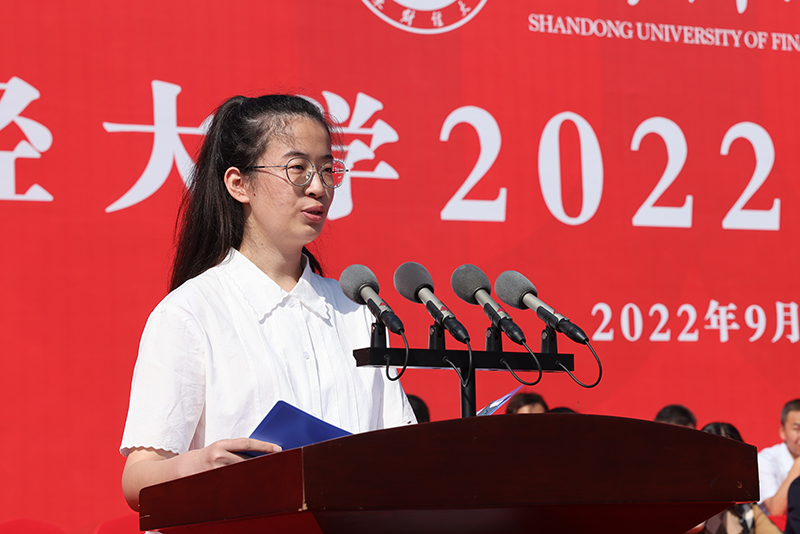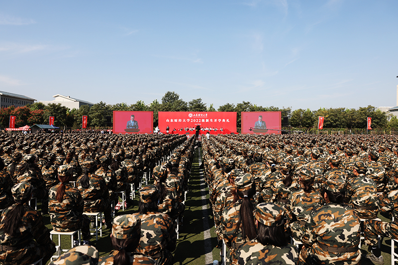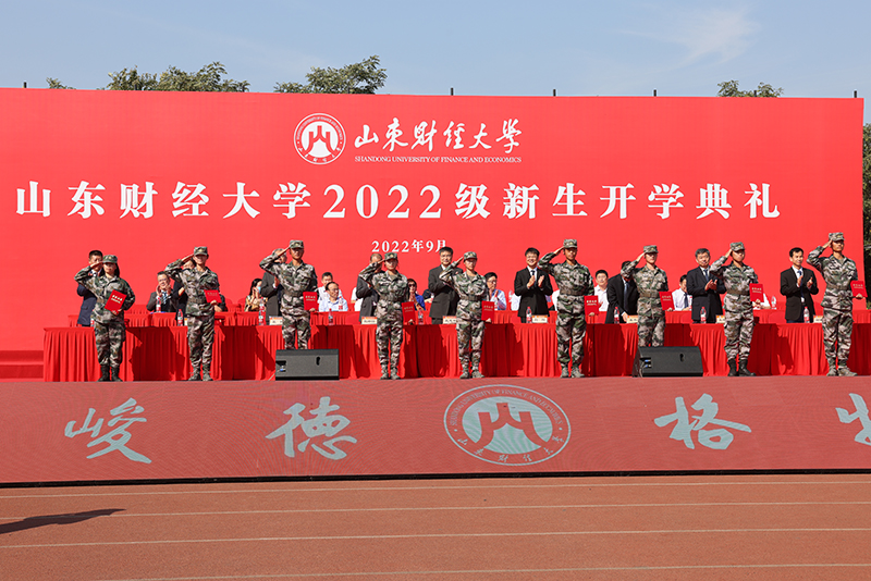上午9:30,全体起立,升国旗、唱国歌。升旗仪式之后,山东财经大学2022级新生开学典礼正式开始。