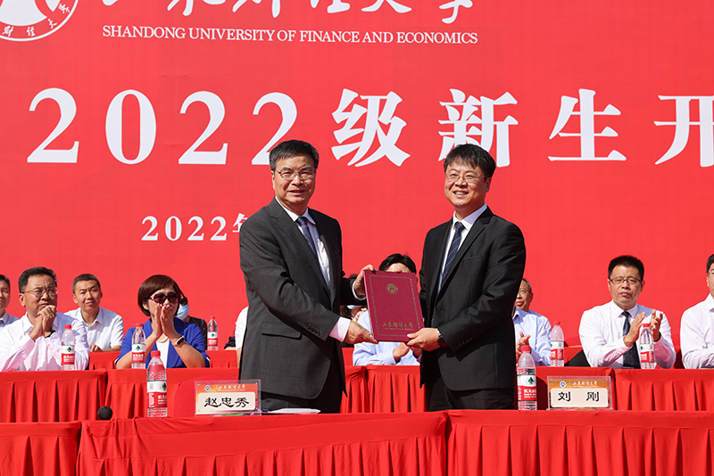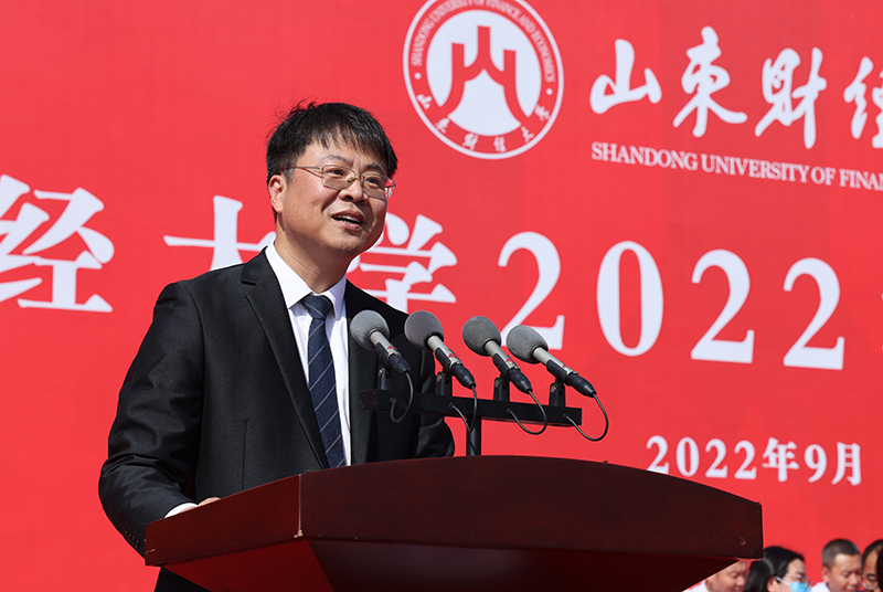 克明峻德,激扬青春梦想;格物致知,创新求真致远。9月30日上午,山东财经大学2022级新生开学典礼在圣井校区田径场举行。校长赵忠秀,校党委副书记张培国,副校长张书学、张新、陶虎,纪委书记、山东省监察委员会驻山东财经大学监察专员王福岱,副校长张红霞、谢申祥,1999级经济学专业校友、中央“马工程”修订专家、山东省泰山学者青年专家、曲阜师范大学副校长刘刚,教师代表、学校“最美教师”和教书育人楷模、全网粉丝450万网红老师、统计与数学学院宋浩副教授等出席典礼。典礼由陶虎主持。