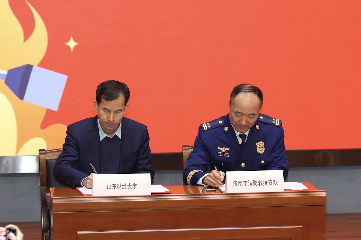 11月7日,章丘区消防宣传月启动暨校地“安全教育实践基地”签约仪式在山东财经大学举行。山东财经大学党委书记查玉喜、副书记谢申祥,济南市消防救援支队政委任广治、副支队长尤胜,章丘区区委副书记、区长边祥为、副区长朱陆益等出席活动。